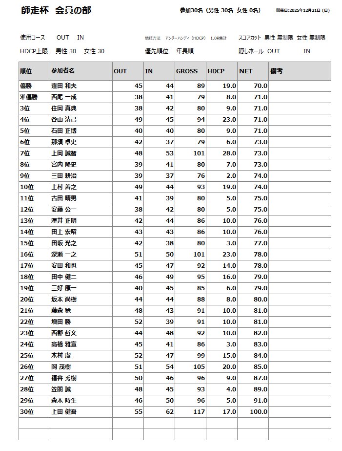 2025年12月21日(日)に行われた霜月杯・会員の部の成績をUPします。