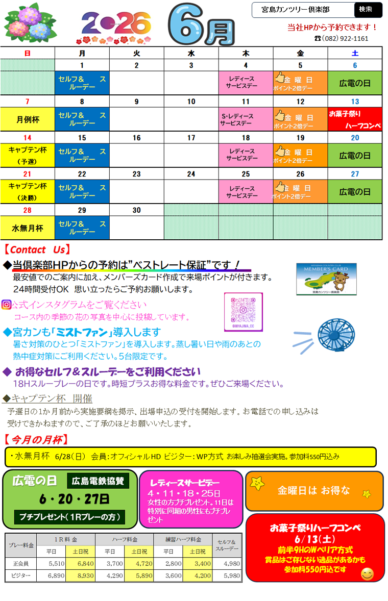 2026年6月のカレンダーをUPします。